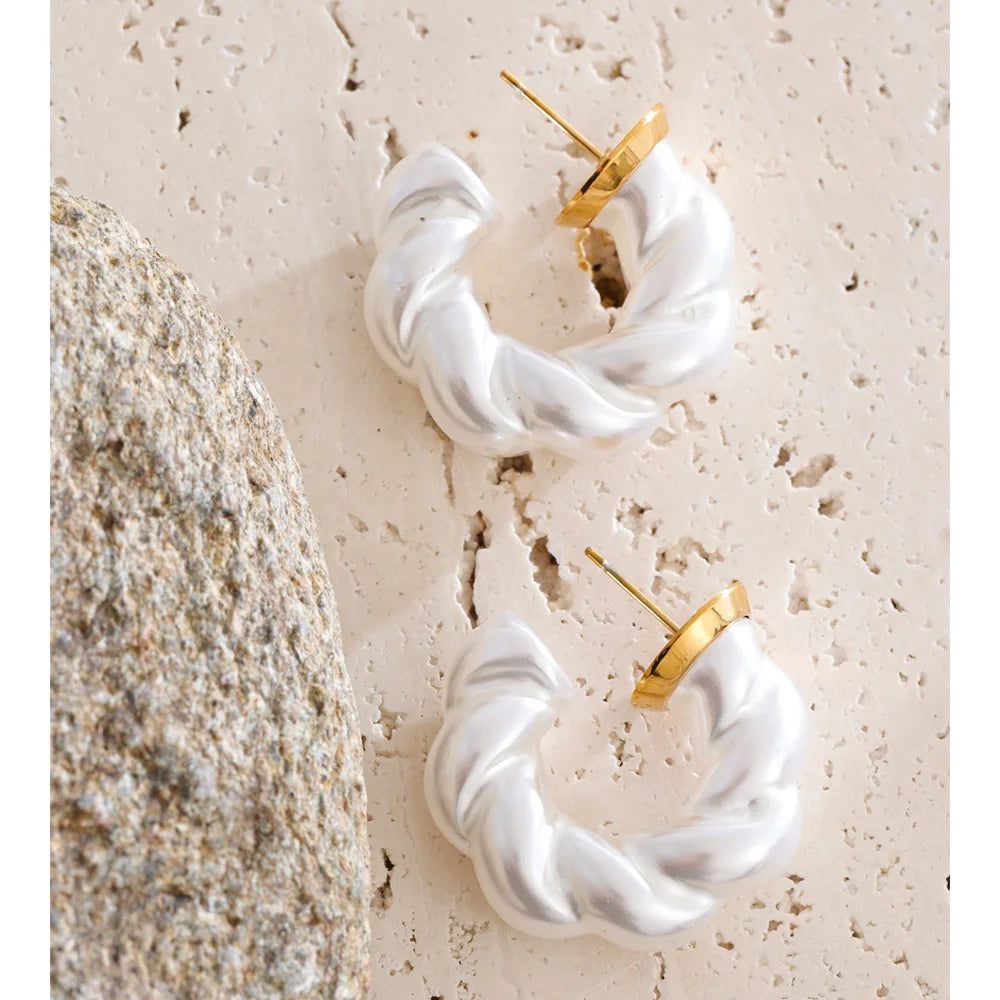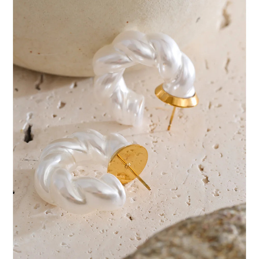 Elevate your everyday style with these chic twisted geometric earrings featuring a glossy pearl accent and a sleek stainless steel finish. Lightweight, modern, and waterproof, they offer the perfect balance of elegance and simplicity, making them ideal for daily wear or adding a refined touch to any outfit.