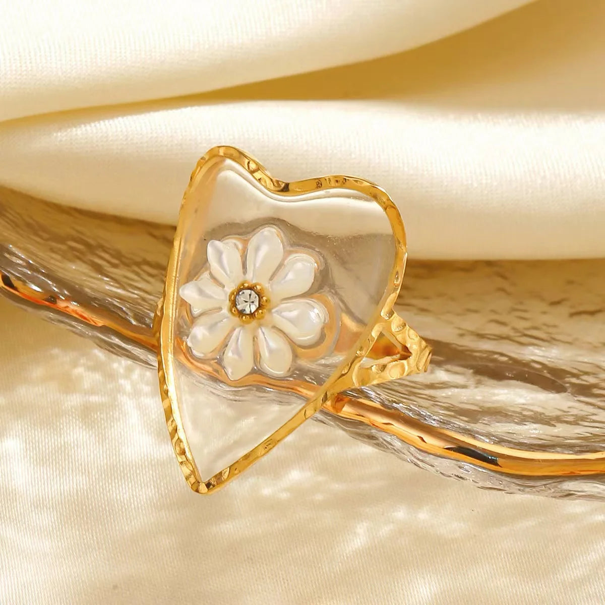This vintage-inspired adjustable ring blends timeless charm with modern durability, featuring a stainless steel waterproof band designed for everyday wear. At its center rests a heart-shaped resin setting encasing a delicate real flower, creating a romantic Bohemian aesthetic perfect for weddings, parties, or adding a touch of whimsy to your daily look. Lightweight yet resilient, this enchanting piece brings together nature-infused beauty and elegant craftsmanship, making it a memorable accessory or heartfelt gift.