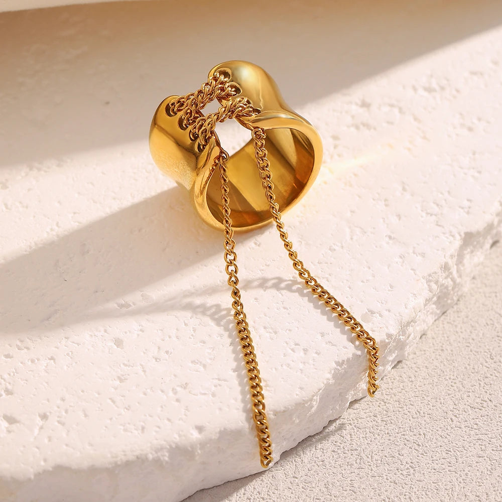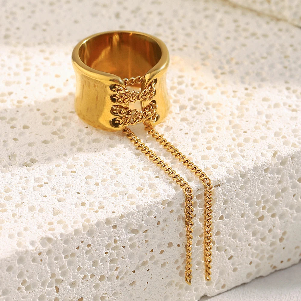 NIAMH - Tassel Wrapped Stainless Steel Ring for Women - Gold-Plated Trendy Daily Jewelry