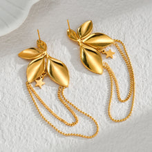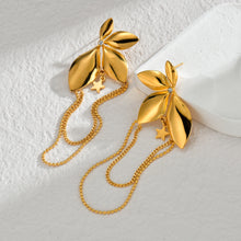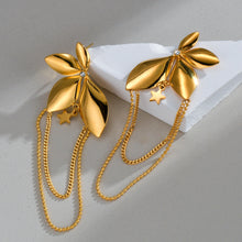 • Load image into Gallery viewer, Shine with elegance in these trendy luxury stud earrings, featuring sparkling zircon flowers, delicate small star pedant and chain tassels. Crafted from high-quality stainless steel, they offer a perfect blend of sophistication and modern charm. Ideal for any occasion, these exquisite earrings make a stunning gift for all times and beyond.